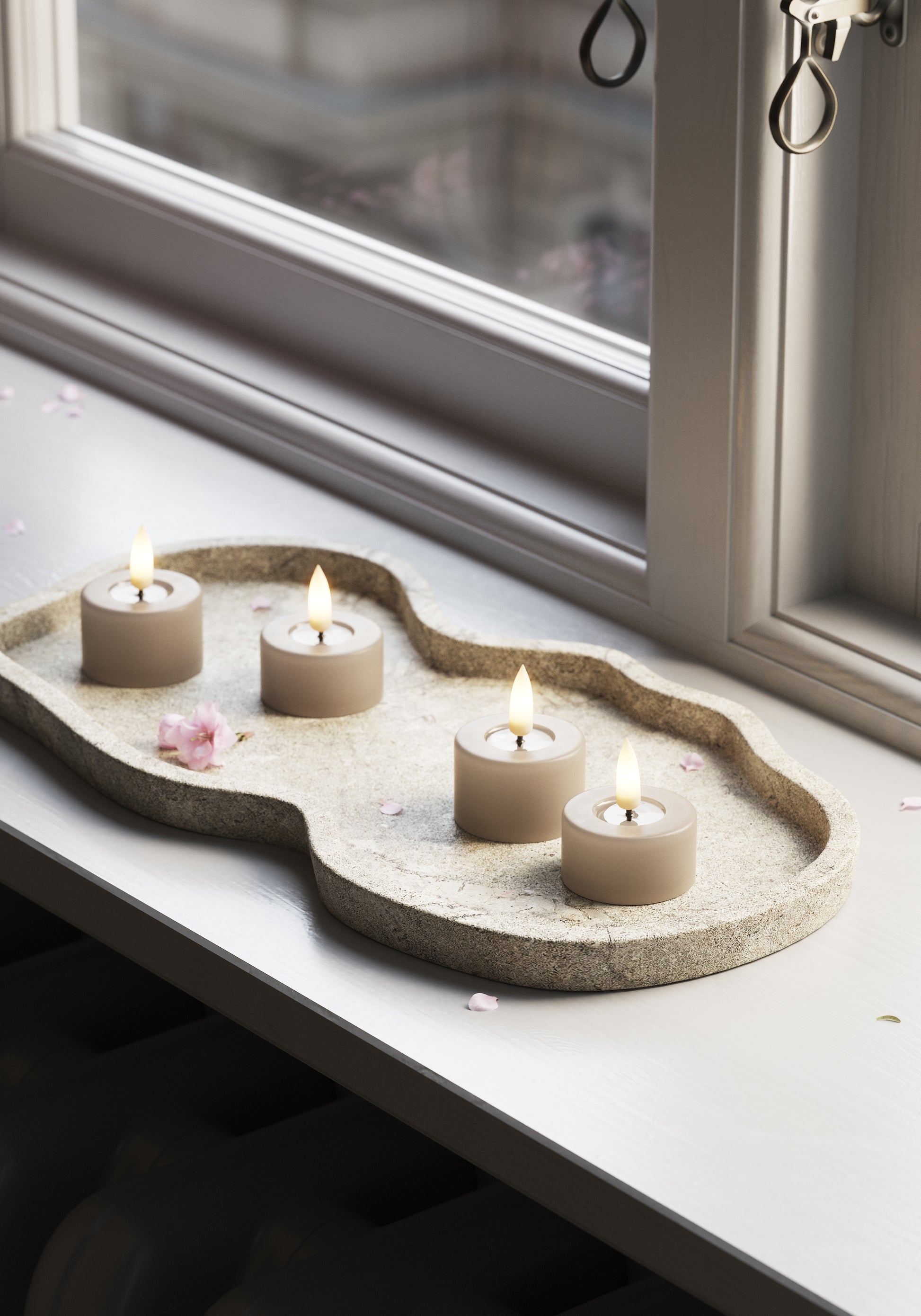 Med bruk av ledlys unngår du giftige partikler som kan spres fra levende lys. Du kan plassere lysene tett opptil annen dekor uten å være redd for at det skal ta fyr. Praktisk til bruk på dekorfat sammen med annen pynt.